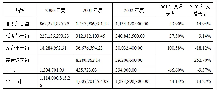 与2001年度相比,2022年度的增幅远远低于2001年度的增幅,开辟的茅台迎宾酒增幅最大。