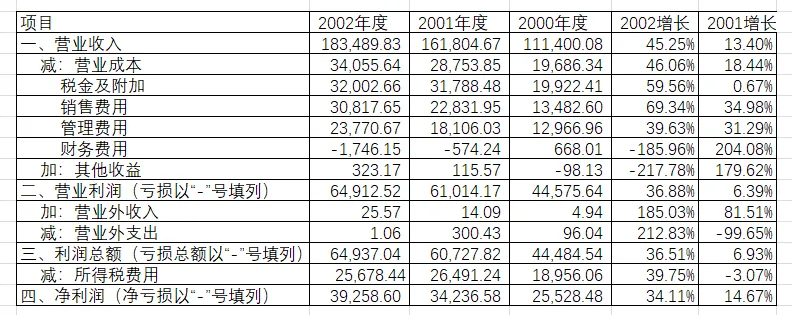 高管人员未发生变化,但从披露的数据可以看出,高管人员的薪酬又有了进一步的提升,2001年度披露的数据为170万,2002年度披露的数据为205.74万元。