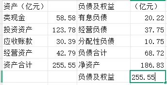 公司经营类资产42.79亿/总资产255.55亿=16.74%,占总资产16.74%。我们判断大概属于轻资产公司。