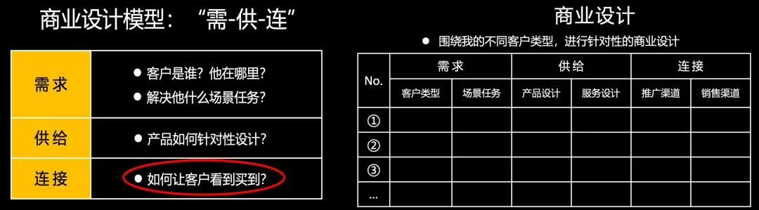 要基于清晰的用户认知来构建产品或服务,在这个过程中要设计出让用户、渠道和供应方都能充分参与的商业模式。