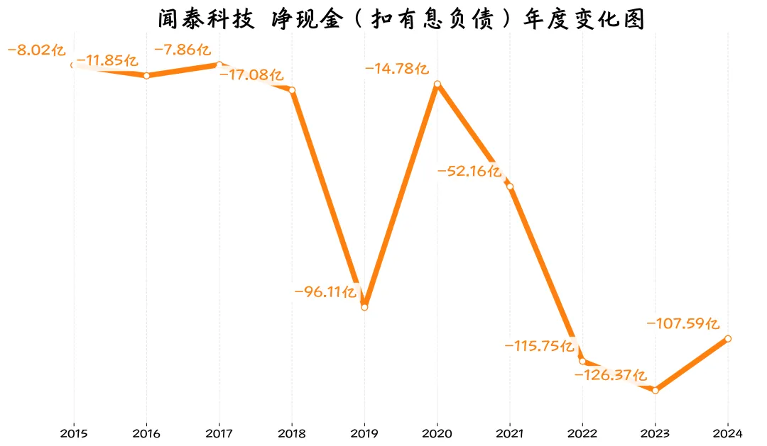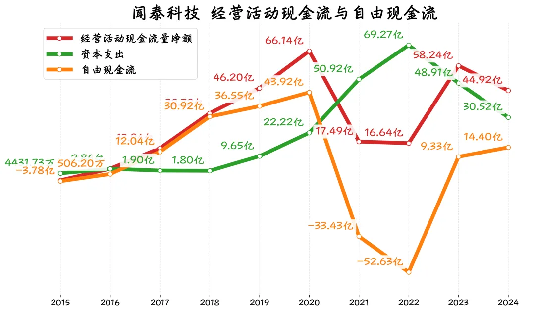 闻泰科技的经营现金流有改善,但自由现金流波动大,净现金为负。