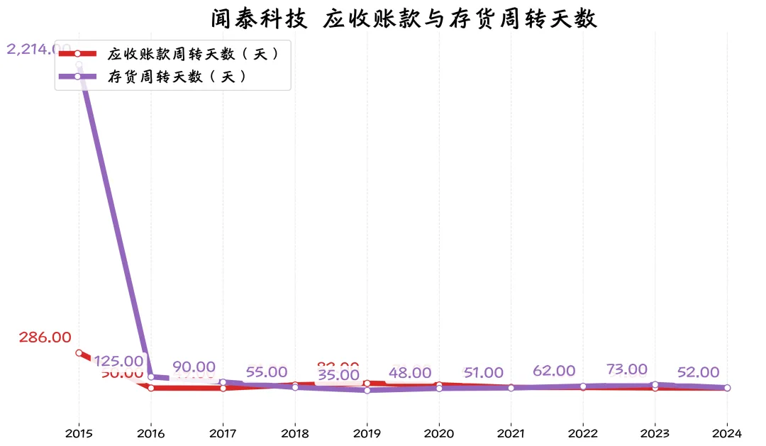 闻泰科技这几年的年资本支出都很大,导致自由现金流甚至是负的(-33.43亿和-52.63亿),好在这两年转正了,不过和前几年比也不算多。