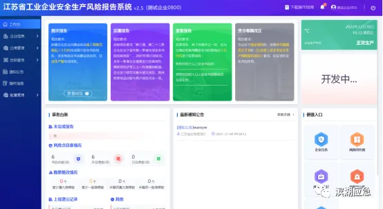根据《江苏省生产经营单位安全风险管理条例》(江苏省人大常委会公告2024年第17号)第十四条及《江苏省工业企业安全生产风险报告规定》(省政府令第140号)第二十二条规定,工业企业要在每年第一季度对安全风险进行全面、充分的辨识,并通过风险报告系统进行上报。企业能够通过首页的首次/定期报告点击“开始填报”进入上报页面。2026年度全省工业企业安全生产风险定期报告工作已正式启动。
