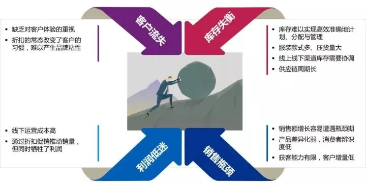在服装业迅猛发展的同时,我们也应看到服装行业目前面临着销售瓶颈、库存失衡、利润低迷、客户流失这四大发展痛点。随着新一轮变革——新零售时代的到来,服装行业也将迎来商业、运营模式乃至组织模式的重大转型升级,能否实现破茧成蝶式的关键一跃,已成为服装行业变革进程中的重大议题。