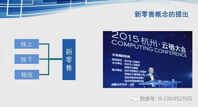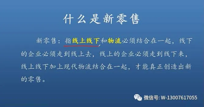 电子商务平台逐渐消失,线上线下和物流结合在一起,才会产生新零售。线上是指云平台,线下是指销售门店或生产商,新物流消灭库存,减少囤货量。