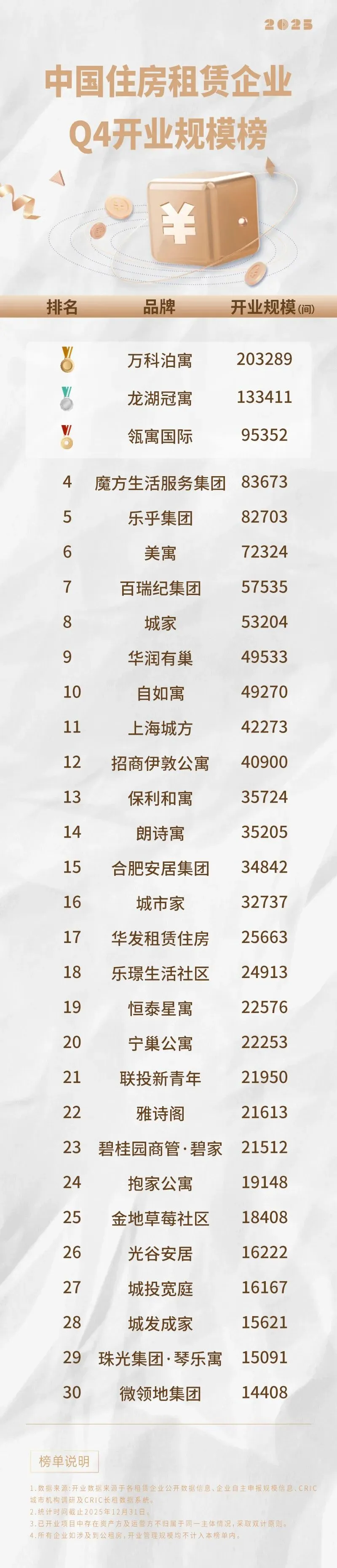 一、中国住房租赁企业开业规模/管理规模榜单发布