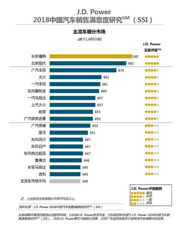 长安福特(687分)首次摘得主流车细分市场第一名。北京现代(682分)排名第二。