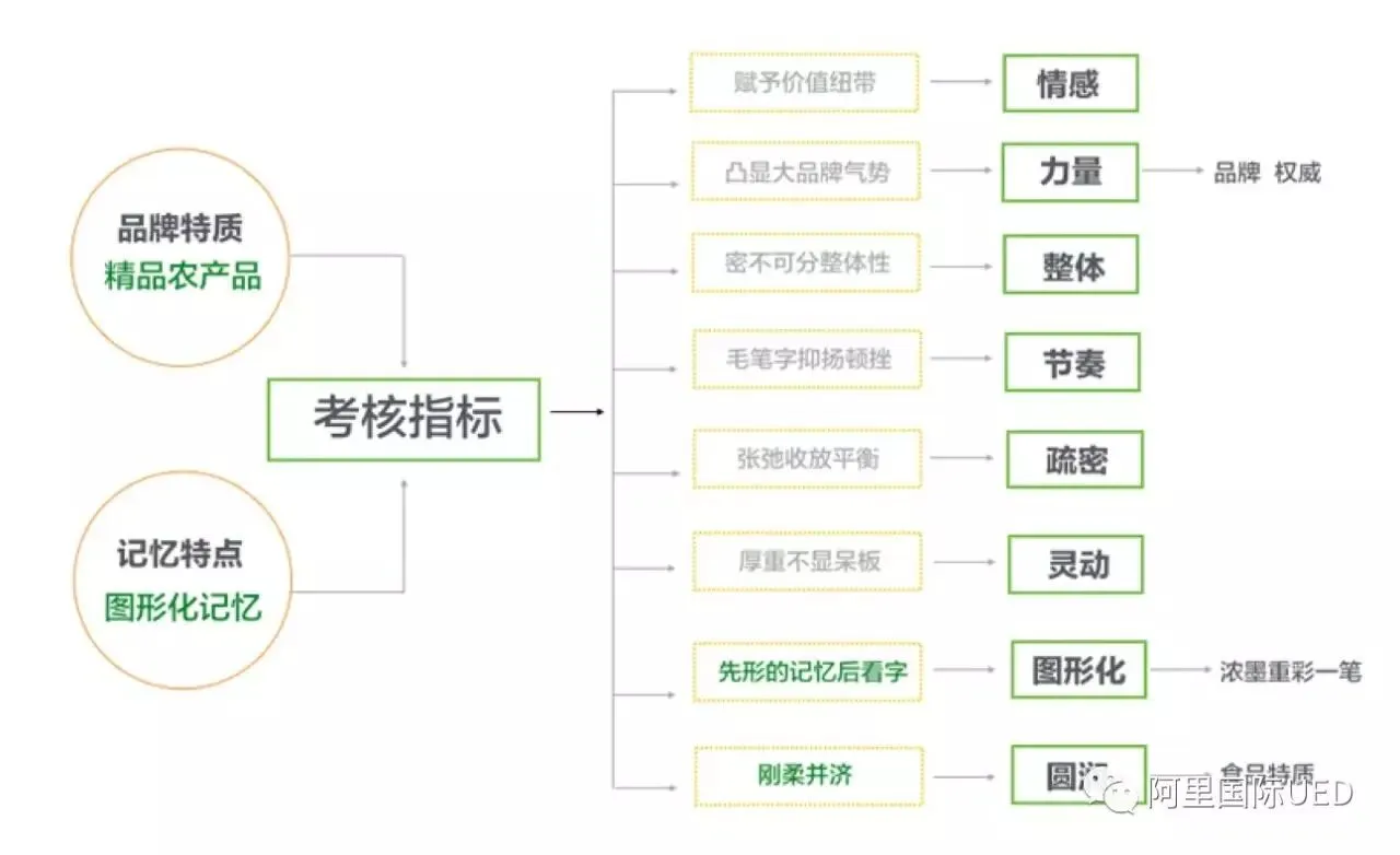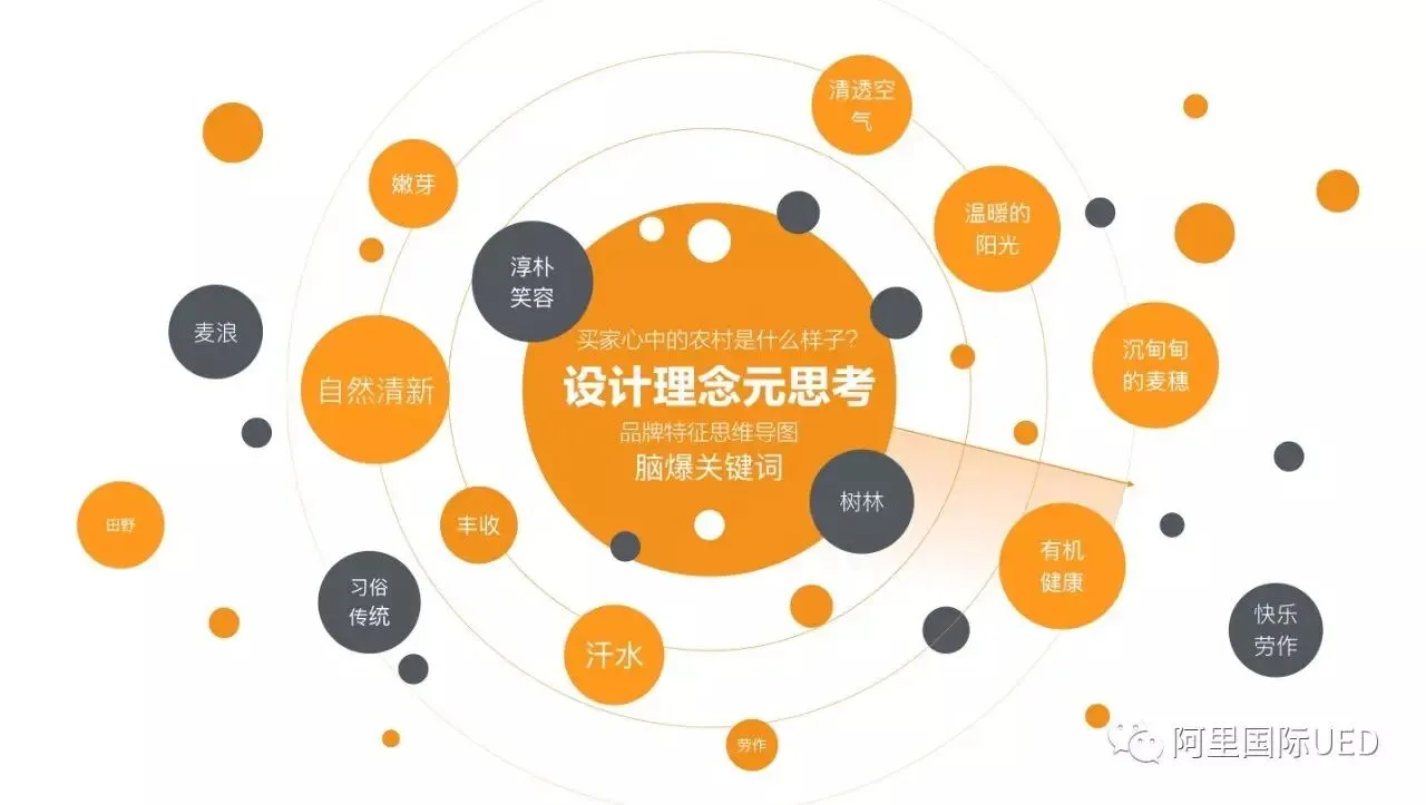 最终聚拢到以从消费者角度出发,塑造买家心中农产品的意识形态,还原农村场景的元素,品牌特征思维导图,将发散各类关键词进行去重、归纳整理、聚焦。