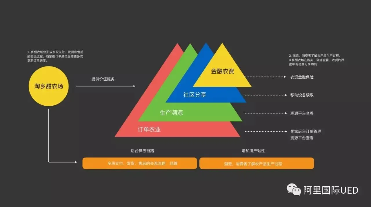 以实际案例农村淘宝中淘乡甜为例,先介绍一下农村淘宝,是阿里巴巴集团的战略项目。阿里巴巴将与各地政府深度合作,以电子商务平台为基础,通过搭建县村两级服务网络,充分发挥电子商务优势,突破物流,信息流的瓶颈,实现“网货下乡”和“农产品进城”的双向流通功能。淘乡甜即是“农产品进城”。