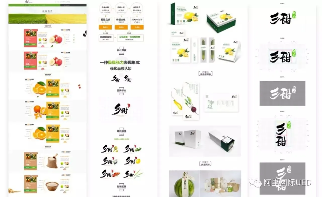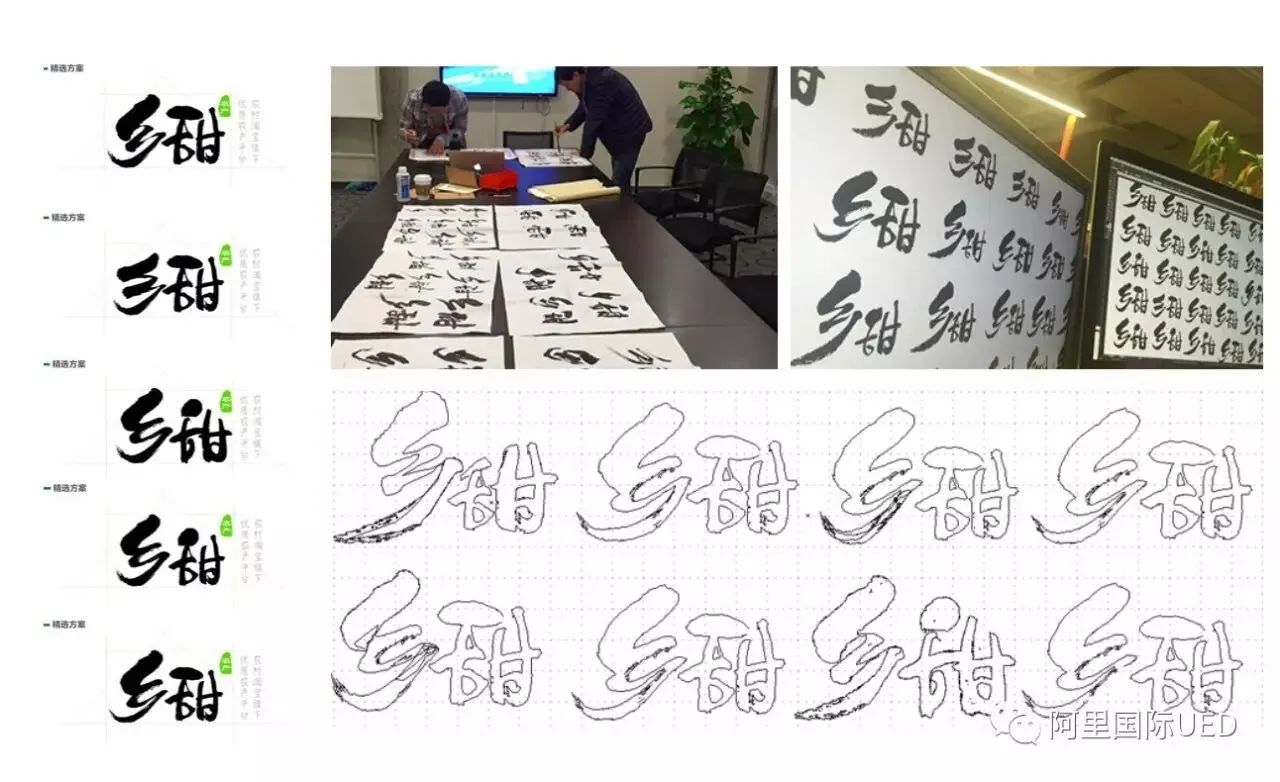 设计本身是艺术表达,商业设计则必须在特定环境合理诠释,并符合当下商业逻辑,遵循市场规律、贴合业务诉求。业务初创期设计logo,我们设计乡甜多套方案,各种字体变形及毛笔字体方案,最终毛笔方案在众多方案最贴合业务诉求脱颖而出。