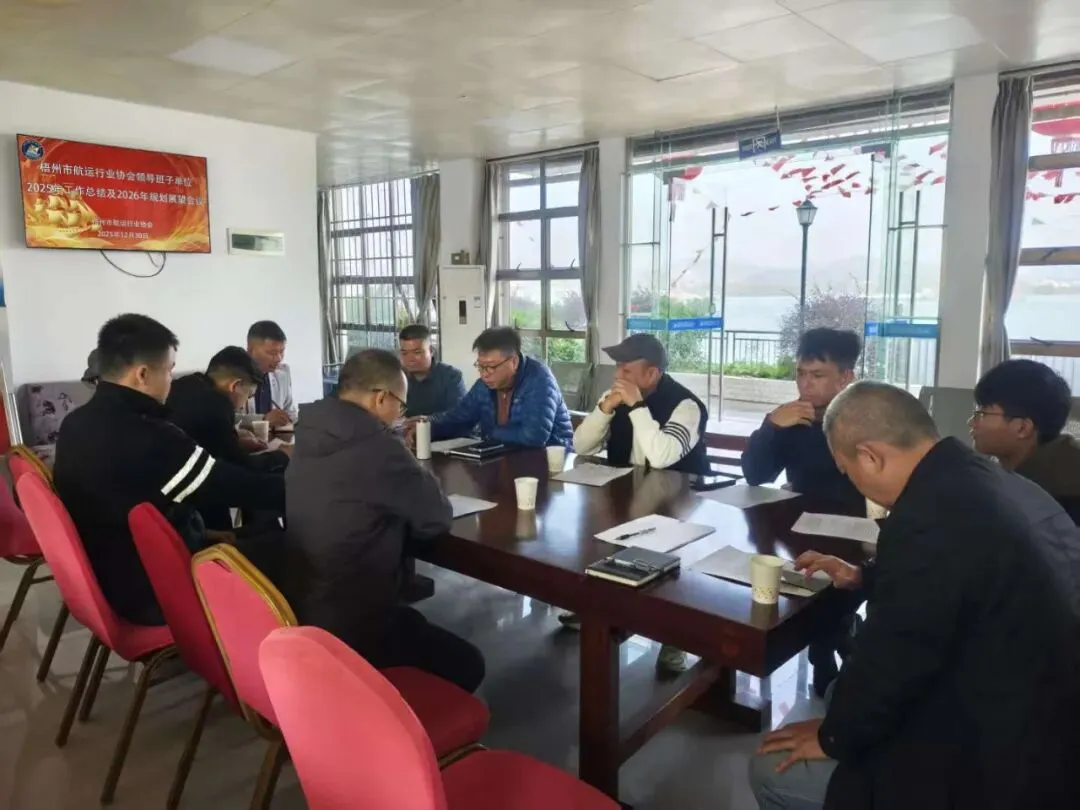 近日,梧州市航运行业协会召开工作会议,会长张勇、秘书长谢洪钊及第一届领导班子单位负责人出席。会议总结2025年协会成立以来工作成效,明确2026年核心计划,并听取与会人员对协会工作及上级主管部门的意见建议。