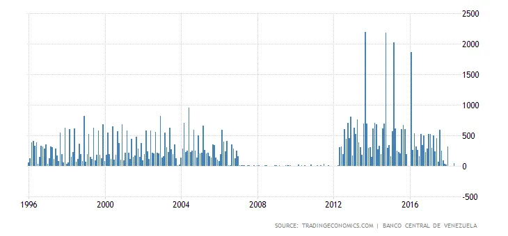 新世纪的第一个10年是资源出口国家的黄金时期。由于石油收益,委内瑞拉的外汇储备在2008年录得422.99亿美元的历史高位。受惠于石油价格高企及连续录得贸易盈余,2007年至2011年间,委内瑞拉的外债居然降至接近零水平。