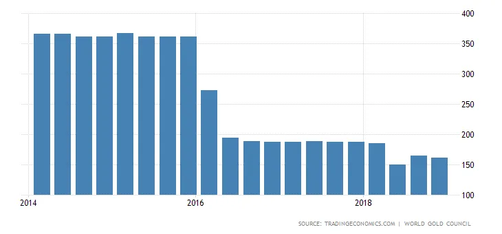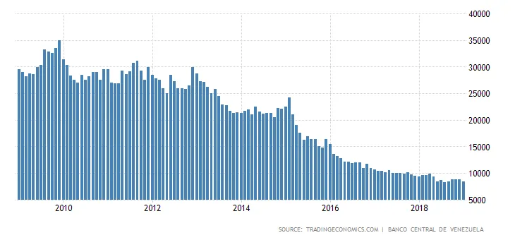 但巨额的债务必然造成外汇储备的流失,据《金融时报》报道,自2014年国际油价下跌以来,债券持有人、商业债权人以及中国方面预计已持有超过1200亿美元的委内瑞拉债券[25]。与此同时,委内瑞拉的外汇储备已从2015年的逾160亿美元降至2019年1月83.93亿美元。