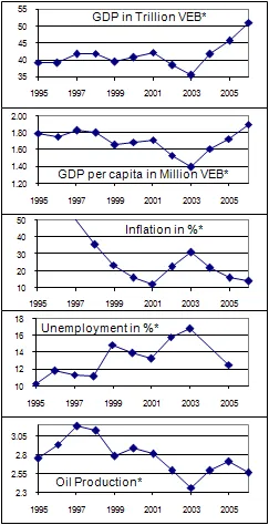 查韦斯执政后恢复了国家的完整石油主权。依赖石油收益,委内瑞拉过去十年无疑取得极大的社会发展成就。然而出口收益过份依赖单一部门,政府税收依赖石油收益。一旦国际油价回落下滑,社会改革的步伐将难免受打击。