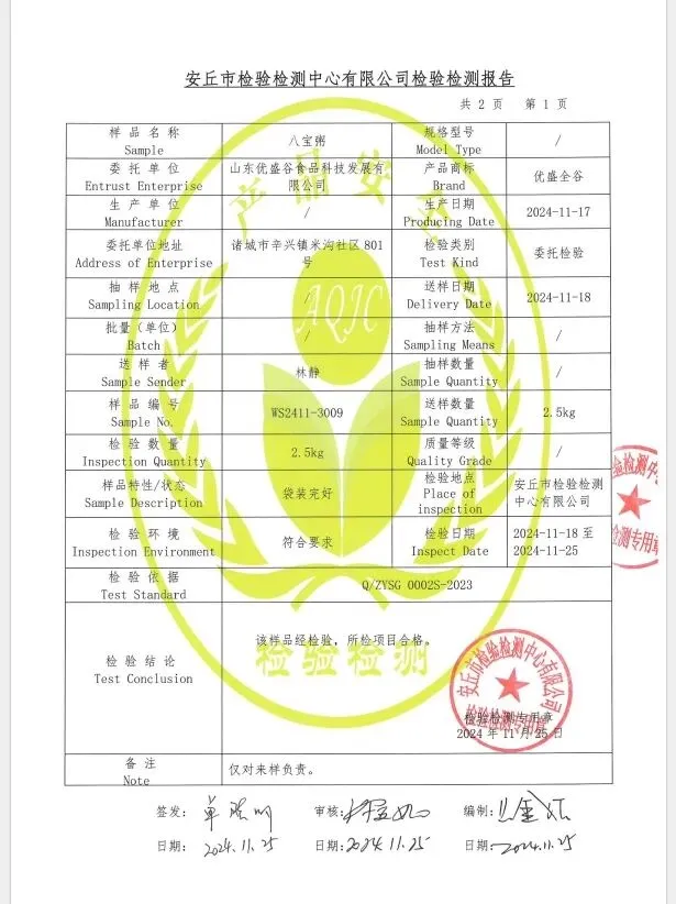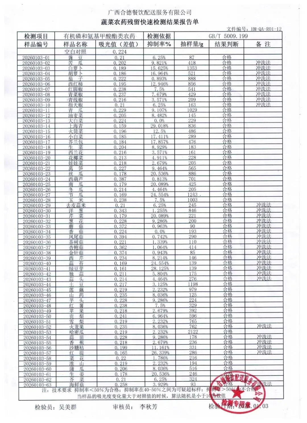 蛋类、肉类、冻品、蔬菜、水豆腐、鲜湿淀粉条检测报告