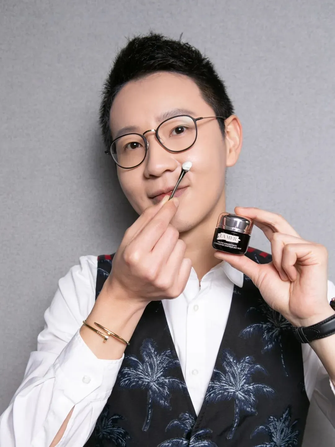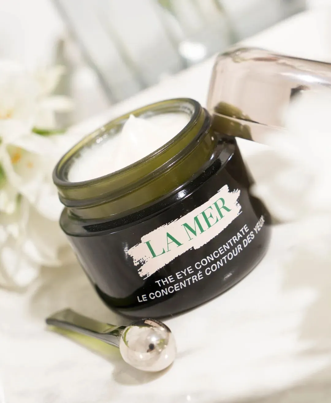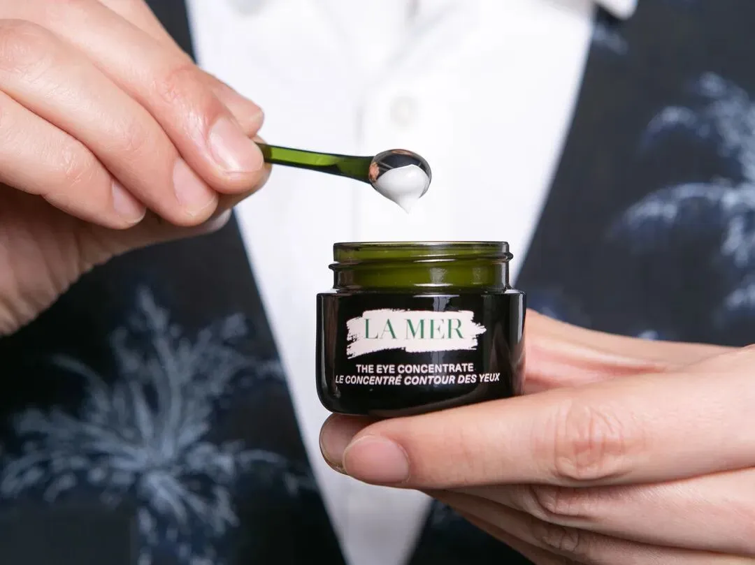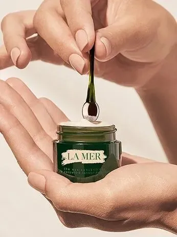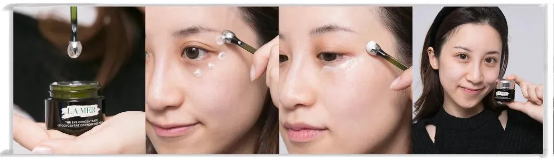 用流银睛萃导入棒沾取适量LA MER浓缩密集修护眼霜;