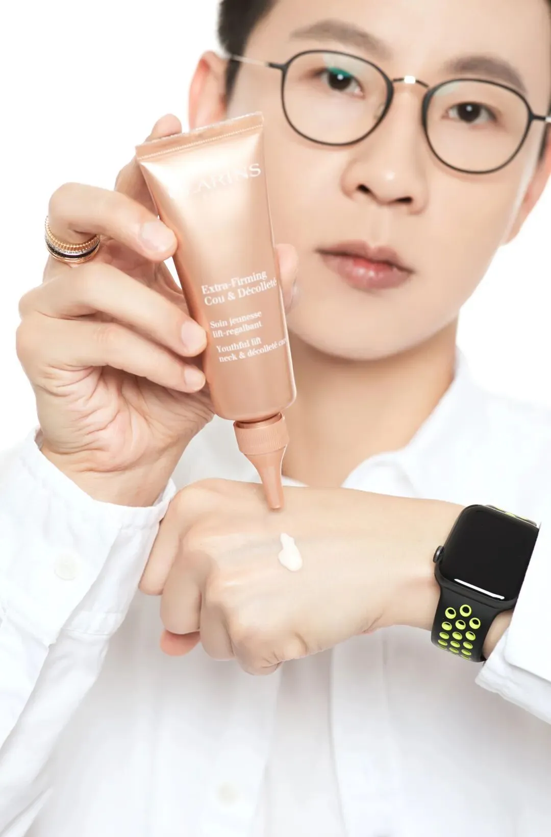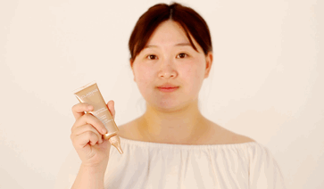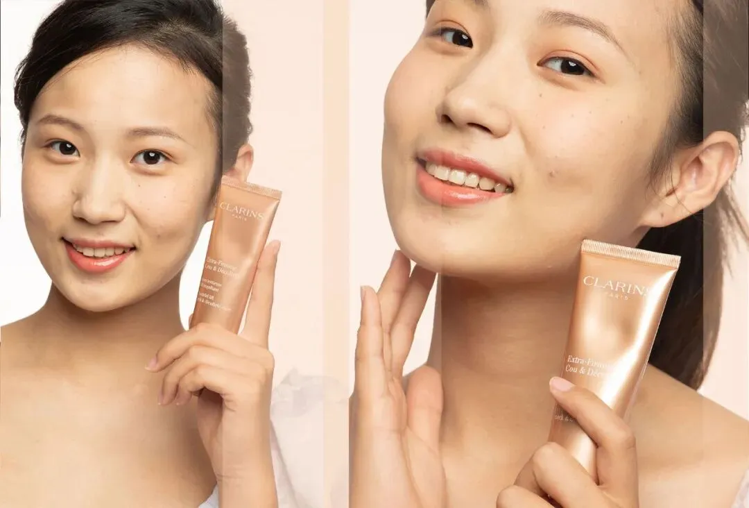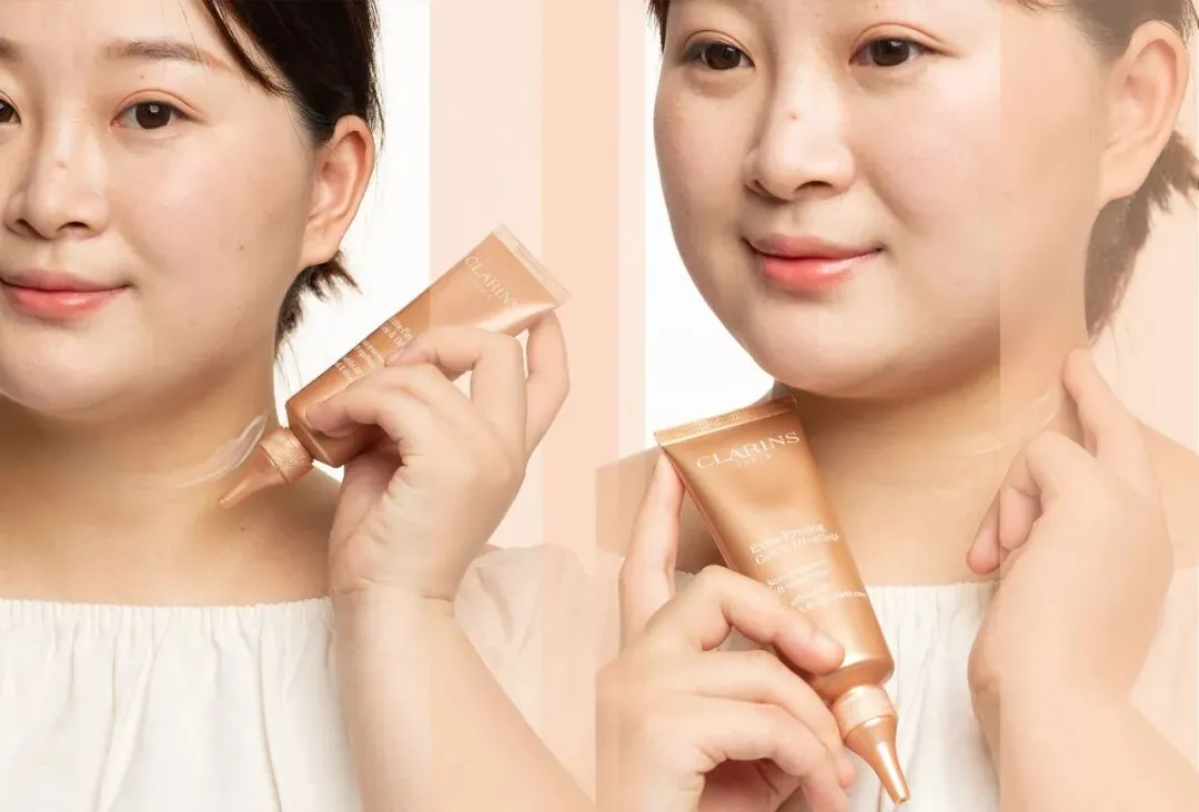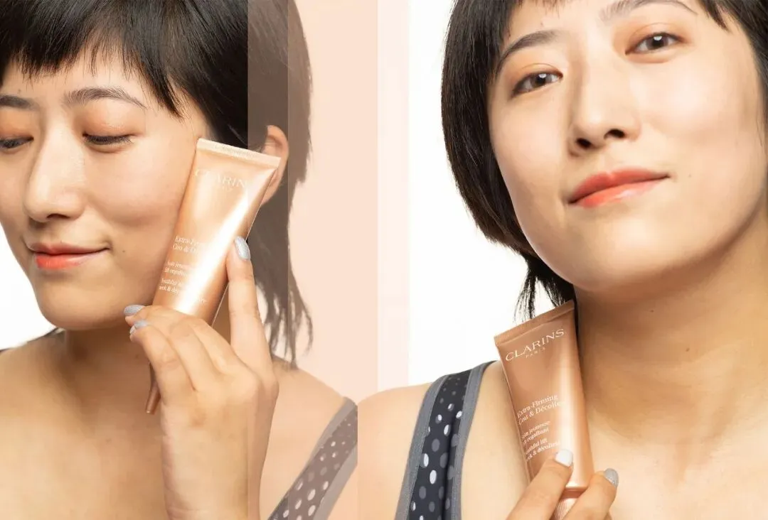 吴毅颖的皮肤由于短时间内被撑开导致皮肤弹性纤维断裂,皮肤变得松弛,回弹性差,视觉上就会有下垂和堆积的纹路感。对于这种皮肤,提升皮肤弹性和韧性非常重要,让皮肤从里面撑起来,而新款娇韵诗颈霜里的独特双重向日葵萃取物能从皮肤里面刺激胶原蛋白新生让皮肤整个回弹饱满,帮助隐匿纹款,紧致颈部皮肤。
