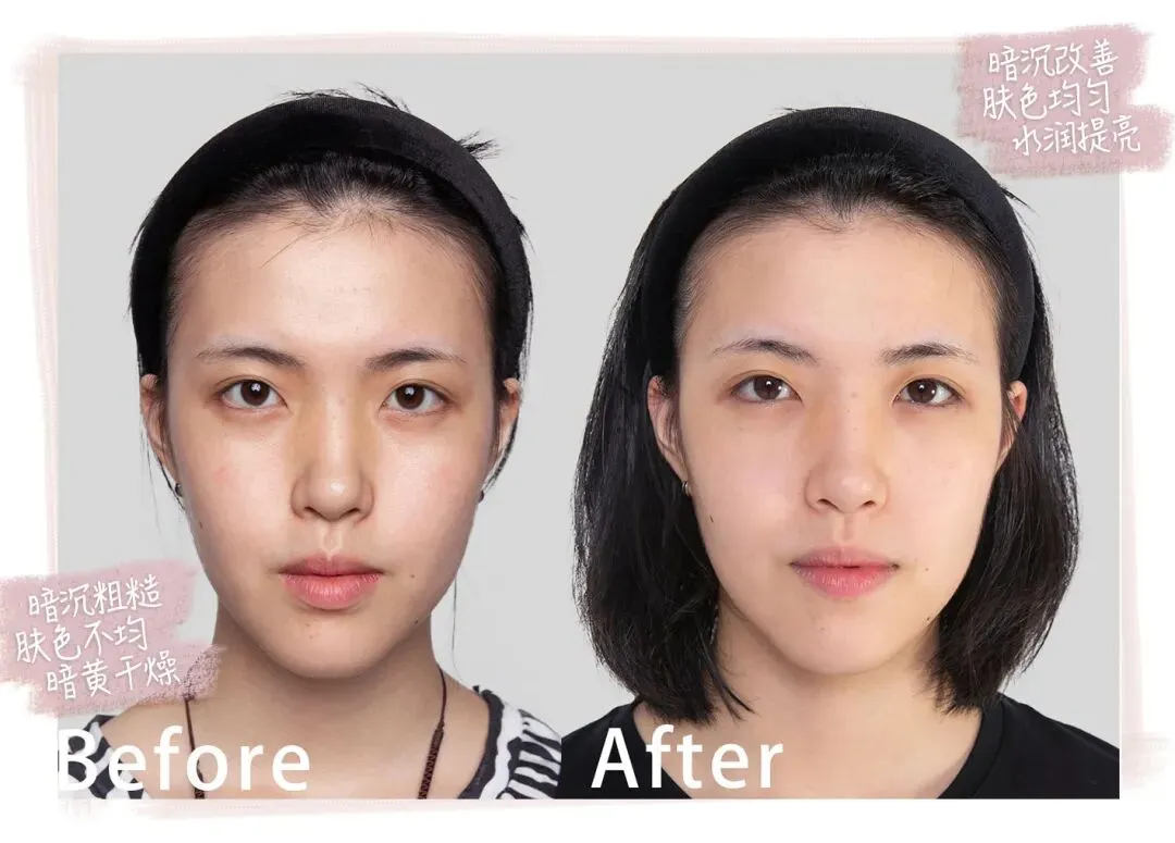 孙本身的皮肤很白,因此肤色不均就会显得特别明显,整个人看上去没有精神。经过21天的调理后,孙现在的皮肤状态有了很大的改善,像刚剥了壳的鸡蛋,毛孔变得非常细腻,而且皮肤更加透亮、均匀。