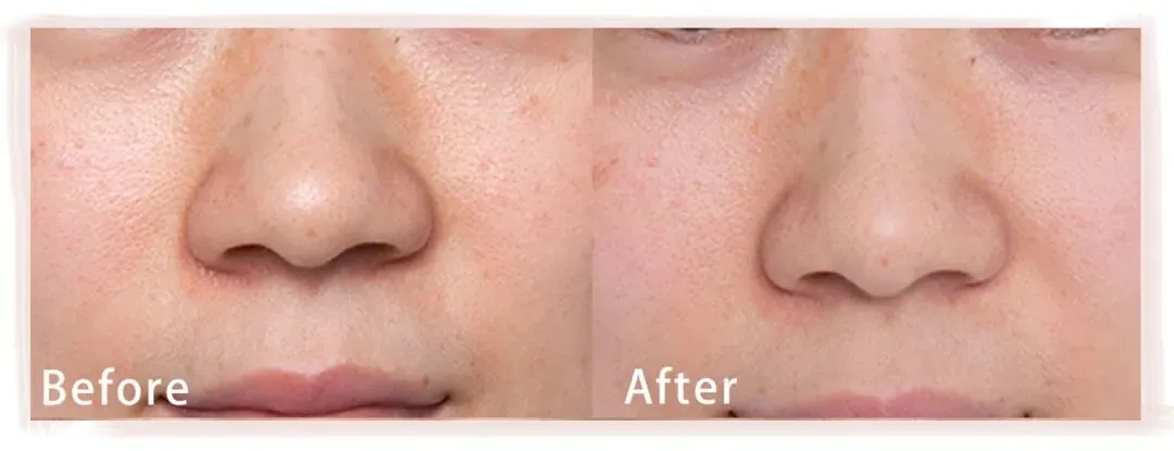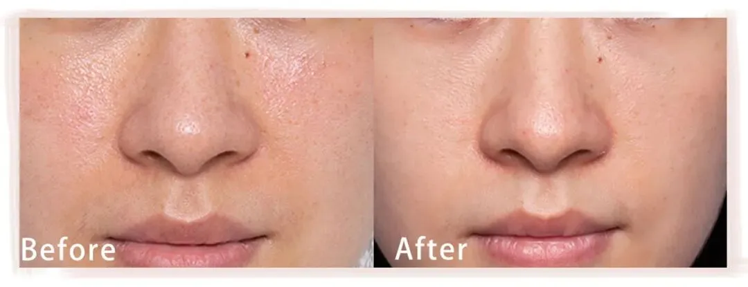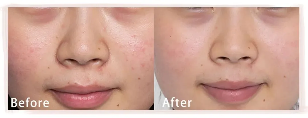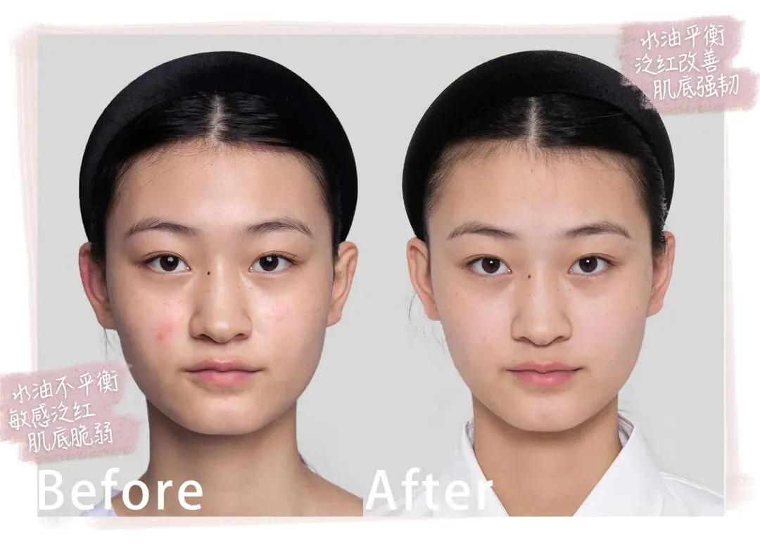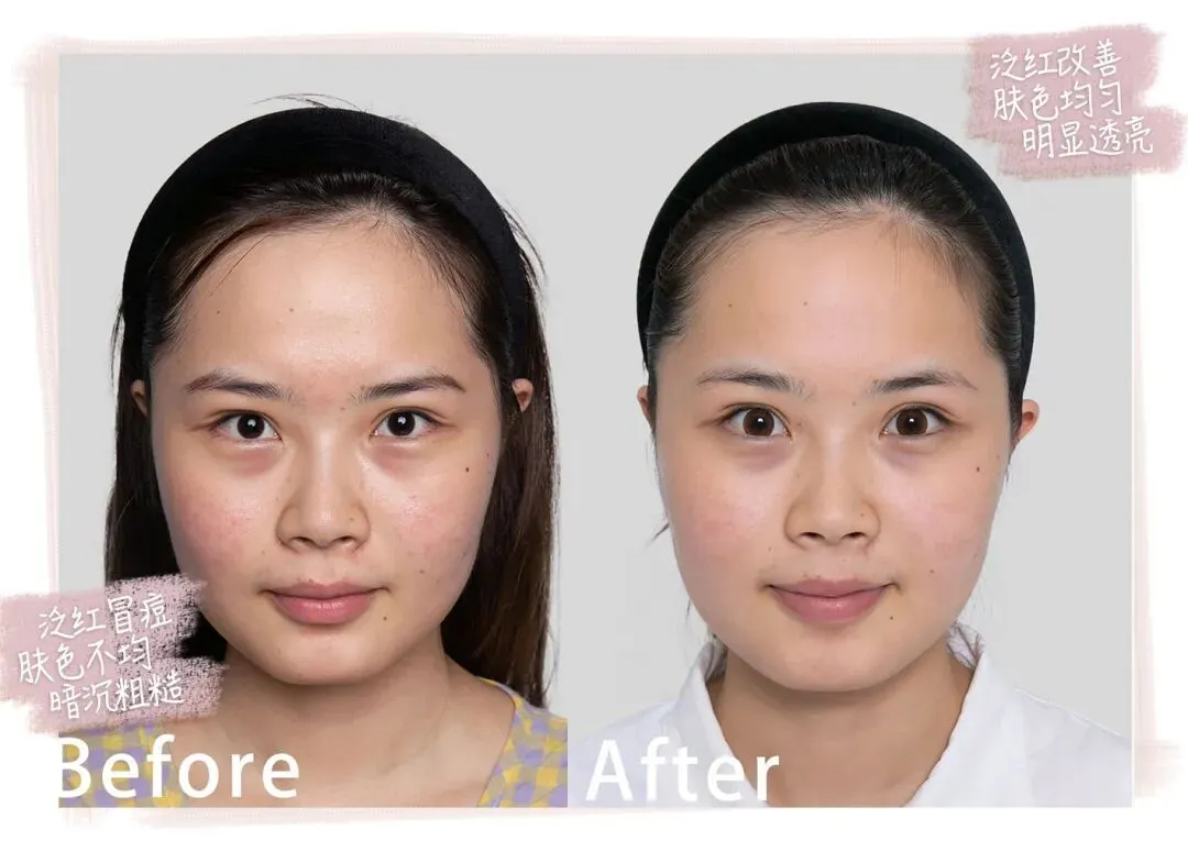 整张脸变得更加干净,额头、鼻翼和嘴角的色沉明显改善,以及脸颊处的过敏完全消退。仔细看毛孔也比之前更干净,现在的肌肤几乎都不用修片。