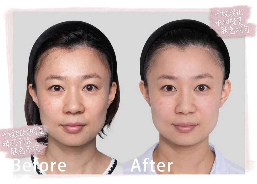 脸上疙疙瘩瘩的小闭口平下去好多,整个皮肤光滑度和平整度有了质的提升,另外肤色肉眼可见的均匀、透亮,整体肤质变得更细腻。此外,皮肤那种油亮紧绷的感觉没有了,皮肤不干不油,前所未有的稳定。