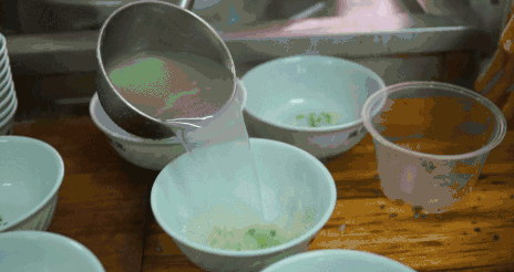 与一般馄饨不同,泡泡小馄饨中只包入很少的肉馅,皮子削削薄。包馄饨时,只在筷子上蘸一点点肉,然后象征性的用馄饨皮碰一下刚刚碰过肉馅的筷子,手呈握鸡蛋的形状,手指配合把皮子四边挨顺序往中间搭起来,大拇指往中间摁一下就成了。在日积月累喂饱“吃货”的岁月中,他们练就了平均一秒包几个馄饨的绝技,手速快的都看花了眼。
