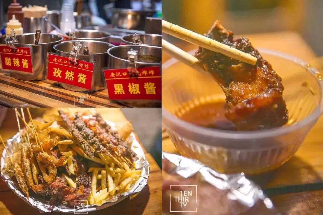 这里的肉串就被称为武汉最好吃的肉串。肉串嫩滑飘香,一串估计能解馋半个月,端上来的炸货都会涮上一层老板特制的油泼辣子,油光发亮很是诱人。每个老食客都有自己的私藏菜单,脆骨、虾仁、螺蛳肉、牛肉串、鱿鱼,每样都不踩雷。