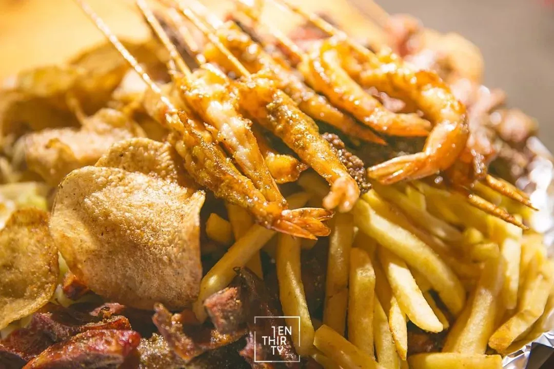在尖叫呐喊与孜然齐飞的鲁磨路,大半夜的满地都是烧烤摊,这家炸炸店显得很隐蔽,位置不显眼,一不小心就会错过那种。