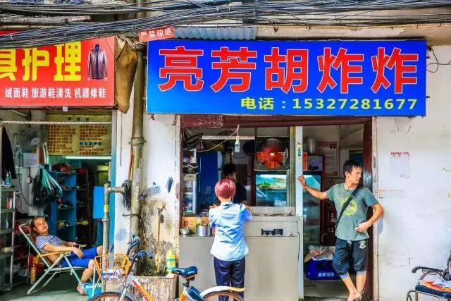 凯德广场对面的巷子里进去大概200米,有一家亮芳胡炸炸,虽然没有居仁门炸炸名气大,但住在这块的人吃得更多。老板是一对夫妻,一开始的时候没有菜单,都是看着菜点。
