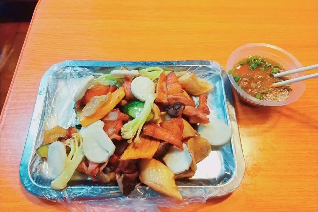没有菜单和价格表,想吃什么,老板会一个个帮忙抓。选菜方面比较推荐土豆、藕、干子、花菜、瘦肉、肉筋。关键还是酱料,他家的酱料分孜然、香辣、麻辣三种,孜然的口味清淡,其他的两款偏辣了些,但辣的又香又有味。