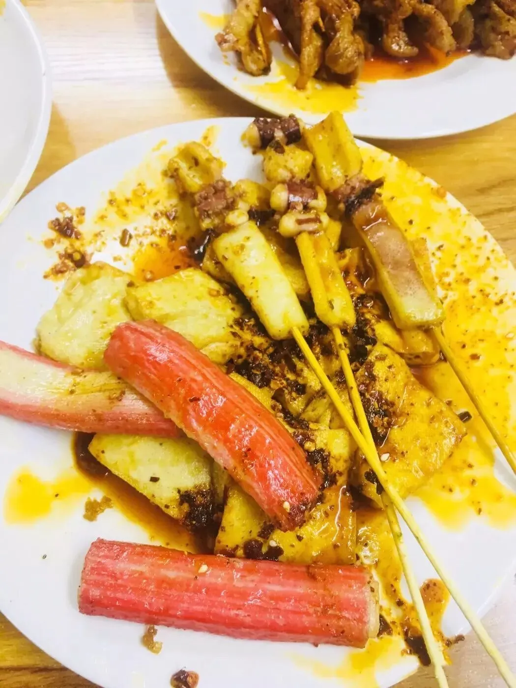 推荐:蟹柳、炸土豆、炸豆腐块、孜然牙签肉