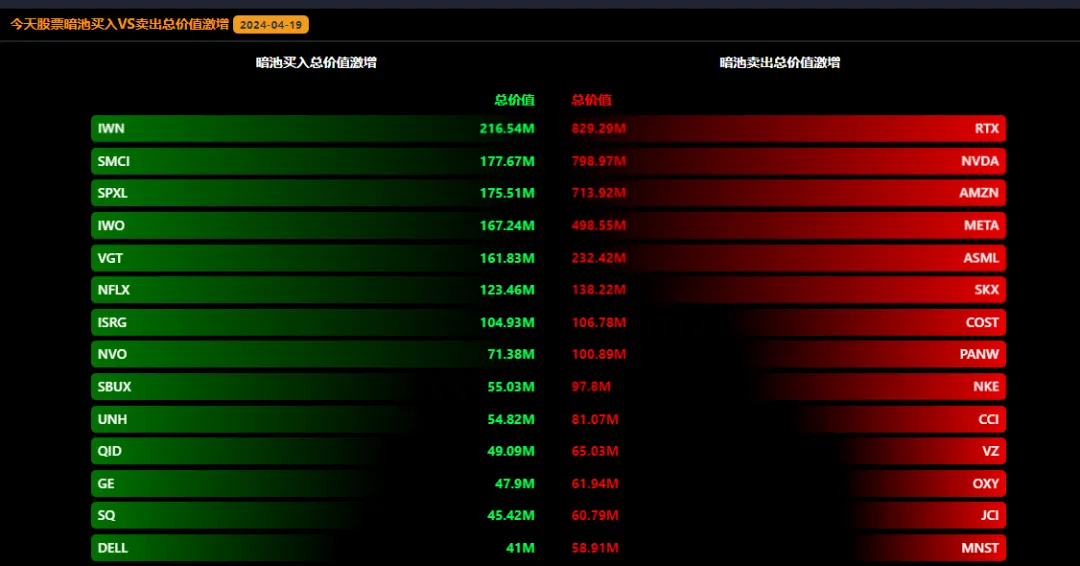 周五,华尔街机构在暗池大单 Darkpool通道,监测到了有机构交易员在收盘前10分钟卖出了价值4亿美元的订单。股数是54.5万股,这单个订单规模我至少在过去一个月都没有见过。
