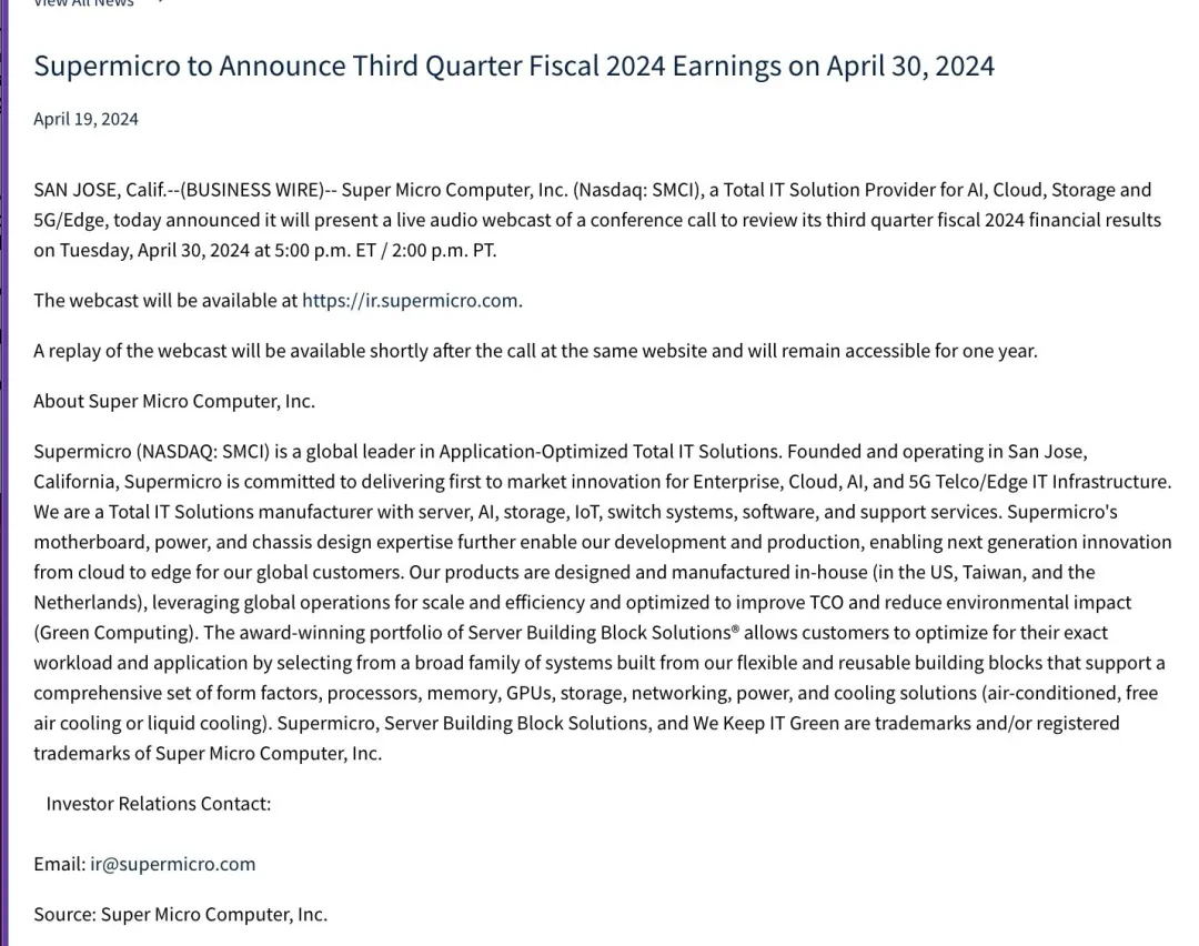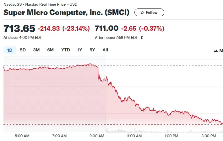 接下来,我们分析引发英伟达大跌导火索,是被称为“一年十倍股”的超微电脑(SMCI),在周五暴跌23%!