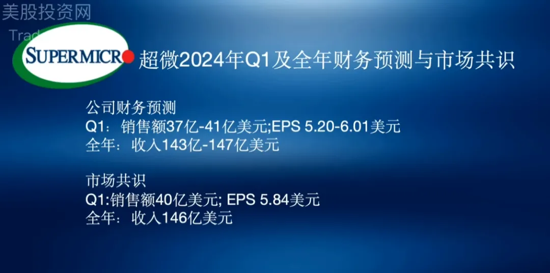 对于2024年第一季度,超微原本预计其销售额将介于37亿美元到41亿美元之间,非美国通用会计准则下的每股利润预计在5.20美元到6.01美元。而对于整个2024财年,公司预计其收入将达到143亿到147亿美元。