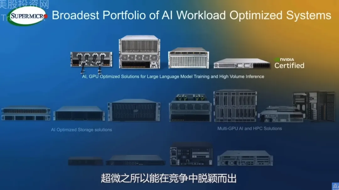 超微电脑的核心业务在于制造并向企业销售计算机设备,这些设备广泛应用于网站服务器、数据存储以及AI训练等领域。公司与英伟达、NASA、日本电器等业界巨头建立了紧密的合作关系,凸显了其在市场中的显著地位。超微之所以能在竞争中脱颖而出,关键在于其为AI芯片提供不可或缺的基础设施支持。无论是哪家厂商生产的芯片,都需要超微的解决方案来实现接入和冷却,这使得超微能够充分受益于整个AI产业的蓬勃发展。