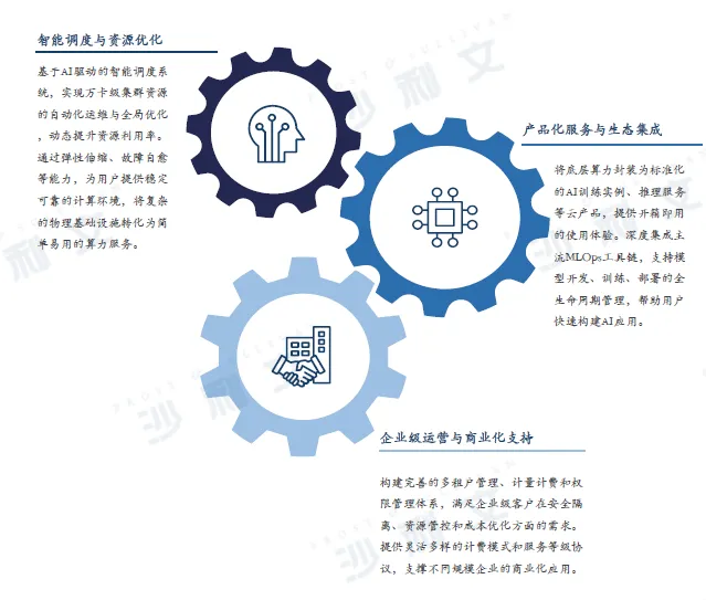 围绕厂商核心能力构建,云平台的价值体现为其将底层算力资源转化为面向市场的一站式服务能力。领先厂商通过产品化、智能化与商业化三重能力构建,持续降低AI算力使用门槛,扩大市场覆盖范围。