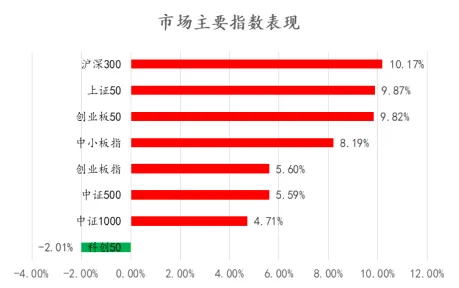 三季度股票市场主要指数除科创50以外均延续上涨趋势,风格上也更为均衡,中证100、沪深300、上证50、创业板50涨幅显著,中证1000、中证500涨幅相对较弱。