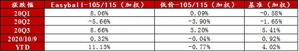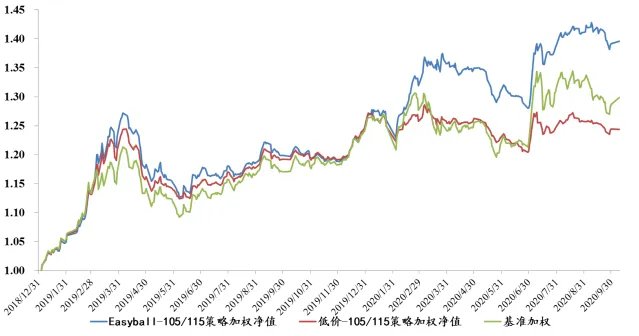 三季度AA+转债指数超额收益显著,具体来看,基本面确定性强、市场预期好、规模大的优质AA+品种容易获得投资者青睐,即使中途波动也较为显著,但往往坚持就会有收获,考验对自下而上的把握。❖单纯的低价策略(105买入、115卖出)今年跑输基准;低价策略更偏向于绝对收益角度。❖相对而言,限制转股溢价率(15%以内)以及正股估值(PB分位数20%以内)的低价策略(Easyball)相较于基准有近7%的超额收益,整体看溢价率是非常有效的择券指标。