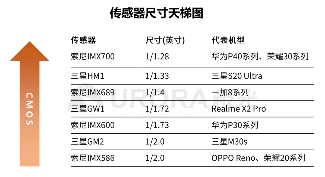 传感器大小一直是各个厂家追逐影像进化的一个方向,2014年松下发布了CM1,画幅高达1英寸,但随之而来厚重的体积让消费者望而却步,主流机型依旧在1/2.3英寸下。随着传感器的快速发展,主流传感器尺寸不断变大,2020年主流旗舰机型一加8系列、三星S20系列分别将尺寸提升到1/1.4英寸和1/1.33英寸。而本次荣耀30系列手机采用的IMX700具有市面上最大的传感器尺寸,达到了惊人的1/1.28英寸。更大的图像传感器尺寸,能够放下更多、更大的像素点,呈现出更大画幅和更好的画质。IMX700的单位像素点尺寸比系列前作有了进一步提升,达到了1.22μm。相比IMX600的单像素面积提升了48.8%。