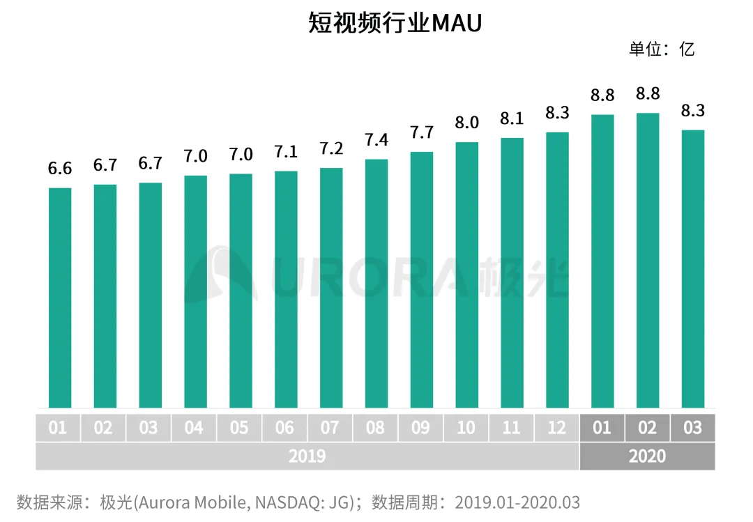 短视频行业活跃用户不断增长,视频资讯已经成为用户广泛接受的新形式。超出8亿的月活用户规模,其后是更大量级的视频作品创作增长点。
