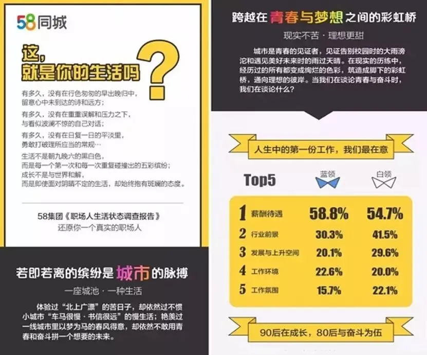 从更深层次的影响力来说,这份报告是58集团对用户生活的具象勾勒,这份报告里面有辛酸,有喜悦,有一个职场人奋斗打拼的痕迹,它就是我们的生活本身。