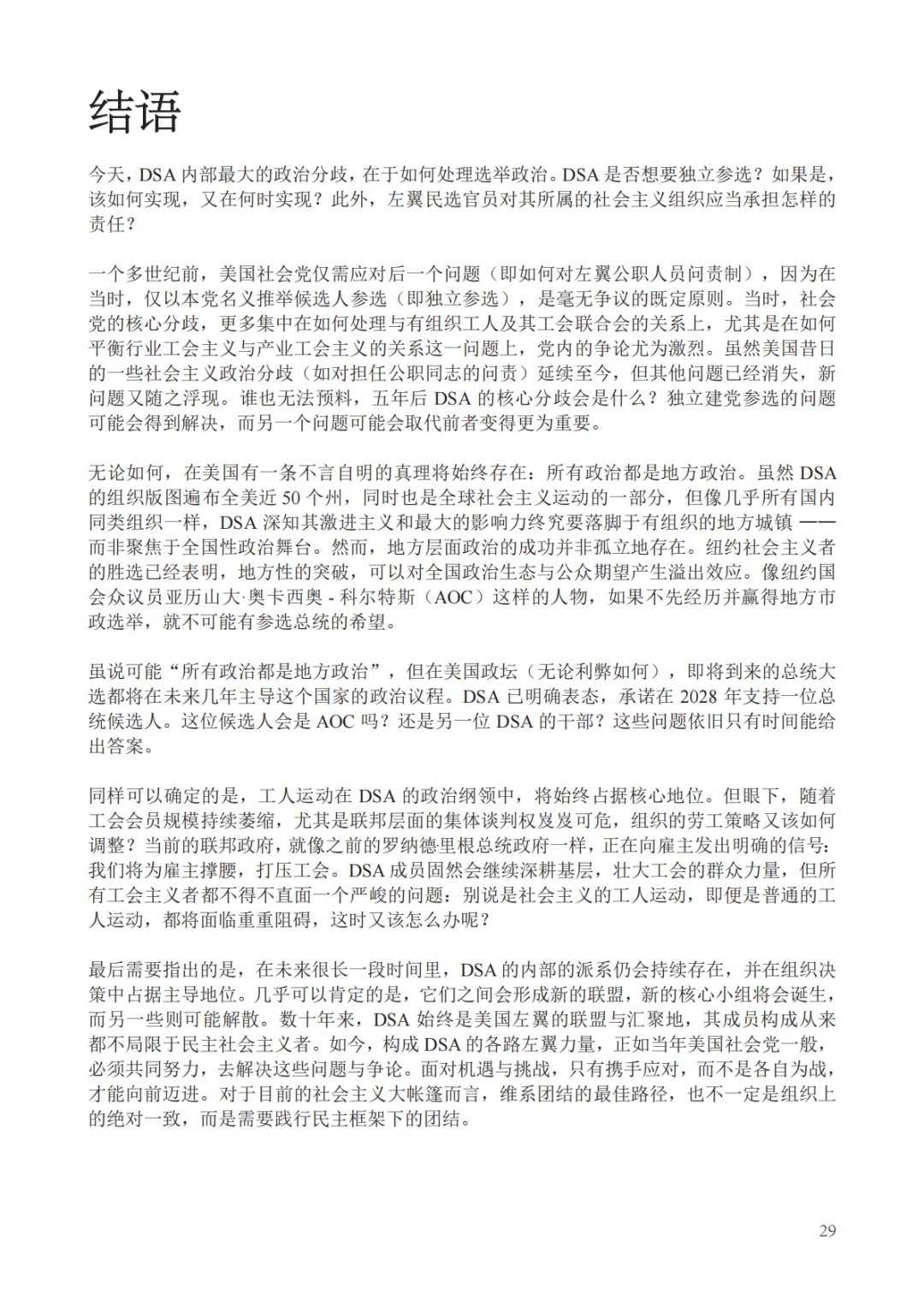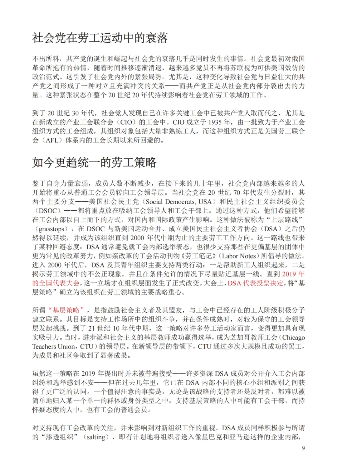 这篇报告的译介,希望能够帮助大家打破对美国政治仅有“两党制”或“自由派与保守派”二元对立的刻板印象,同时提供一个观察西方发达国家左翼如何在反共传统深厚的政治土壤中通过灵活的统一战线与基层渗透策略实现政治复兴的绝佳样本,为理解美国当下的罢工潮与政治极化提供了深层的阶级分析视角。