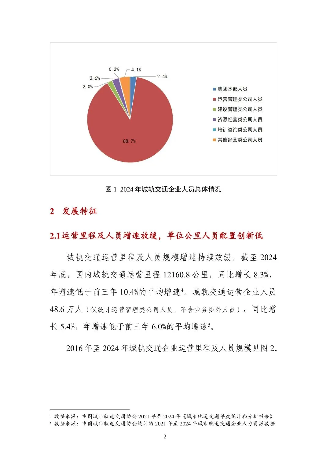 第一部分 “概述” 介绍2024年底全国城轨交通企业人力资源总体情况,呈现运营里程及人员增速放缓、全自动运行线路增加但人员配置差异大、员工队伍结构改善等发展特征,同时指出线路在建及规划里程下降致人才需求增量降低,复合多能型人才紧缺的需求特征。