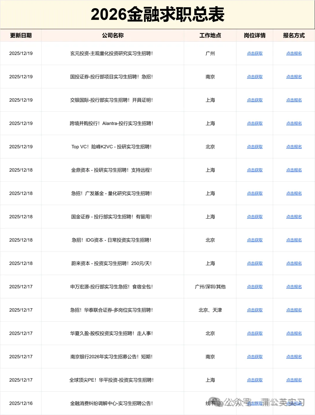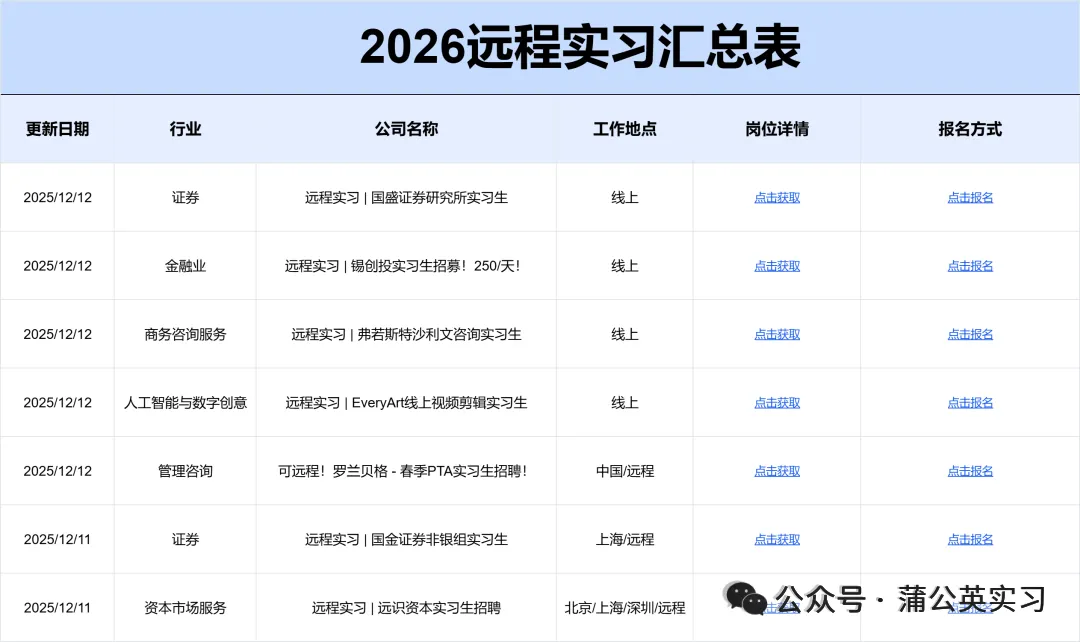 ☛ 2026券商投行实习信息(散招实习)