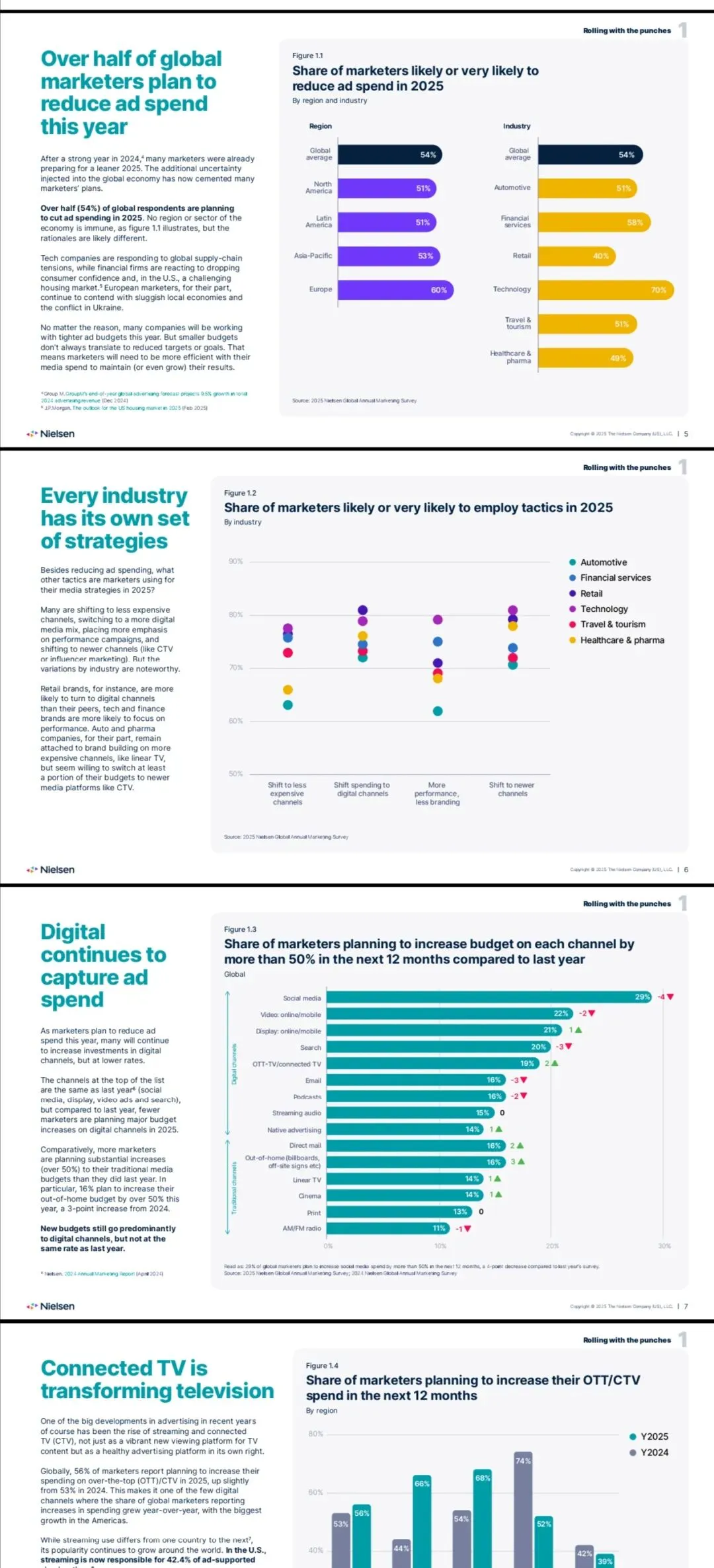 尼尔森最新报告揭示,面对经济不确定性,54%的全球营销人计划削减预算,但并非简单收缩而是战略调整。核心转向数据驱动的精准营销,表现为三大趋势: