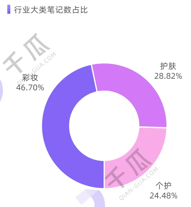 行业数据显示:彩妆占比46.70%,护肤占比28.82%,个护占比24.48%
