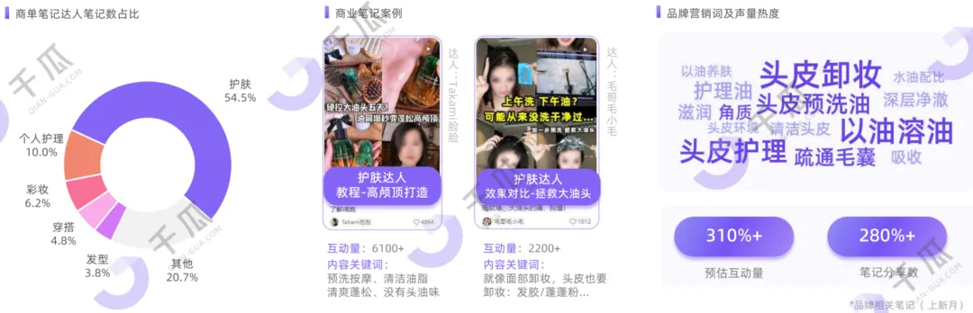 2、内容传播:围绕"以油溶油"(阐释作用机理)、"头皮卸妆"(建立直观联想)、"疏通毛囊"(强调根源养护),结合"发型教程、效果对比"等,高效传递产品价值和使用场景,实现心智快速迁移