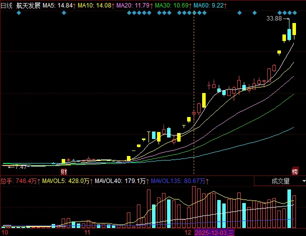 然后29日、30日的周末商业航天题材消息发酵,我在周末给了周一航天题材能参与的判断标准,目标是雷科防务和航天发展,当时雷科防务一字了,所以只有航天发展能关注。