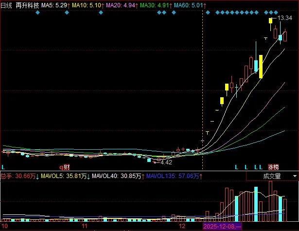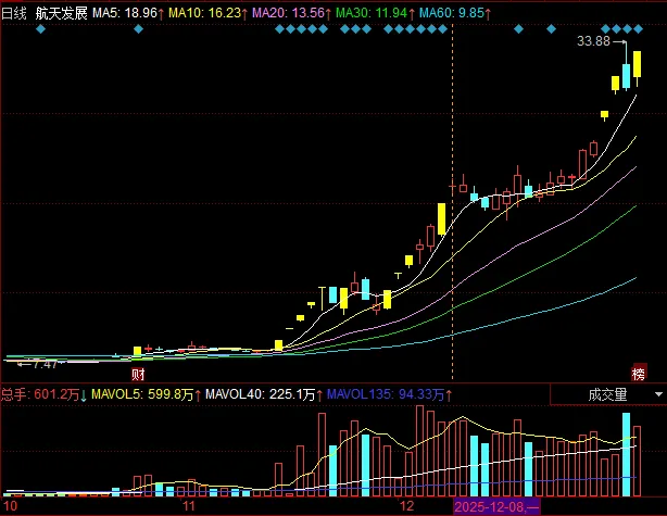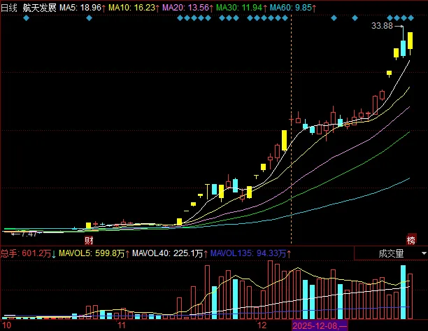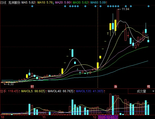 另一边代表消费电子的道明是一个弱修复,但是商业航天加海峡双题材的龙洲开启一次加速,同时东百首板,那么可以判断这个主升载体就是航天和海峡。这个时候闭着眼睛选一个辨识度去参与,问题都不大。在我看来,12月5日的早盘半小时是标准的梭哈节点,越早涨停的股票溢价越高。