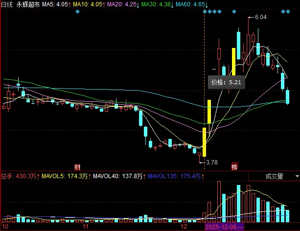 然后12月10日龙洲爆量代表12月5日这个主升结束,进入高位震荡期。接下来就是龙头航发横盘期间的标准玩法。你可以做题材内部的补涨,比如航天电子,西部材料、航天机电,再升科技等等,但是题材内部的补涨比较随机,基本是打地鼠模式,商业航天板块难度加大,拿着一个比换来换去更好。大家这个时候喜欢玩消费,这个属于题材间的切换,这个比商业航天的补涨要好玩很多,因为消费的辨识度挺少,资金的注意力集中,选的无非就是永辉、东百、百大。