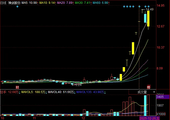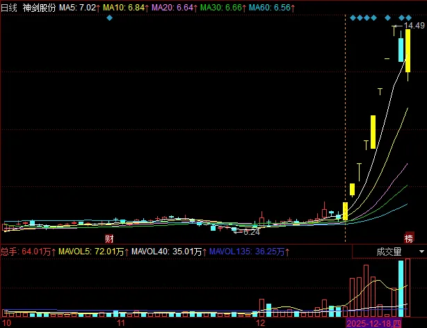 商业航天第一次出现比较大的负反馈是12月17号,板块内出现几个主动地板的票,但是当时主要是神秘力量出手,强行将大盘回首掏。所以,短线题材票是被动分歧,次日有修复的预期,第二天修复的载体是顺灏股份和西部材料,同时共振了神剑的首板,那么18号这天属于高位震荡期的第二次修复。